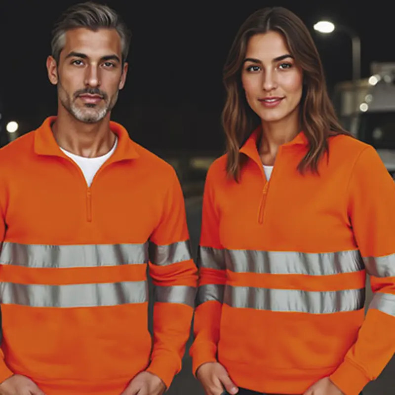 - Incluye dos bandas de material retrorreflectante cosidas en el contorno de la prenda por debajo del pecho.