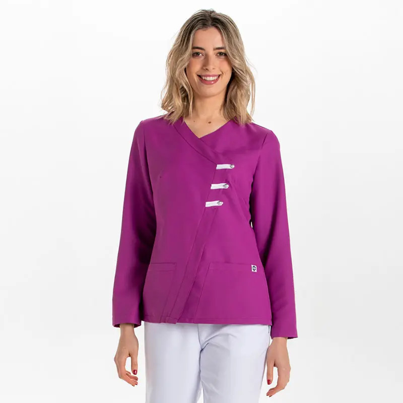 - Parte delantera cruzada y abrochada con corchetes en la parte izquierda.