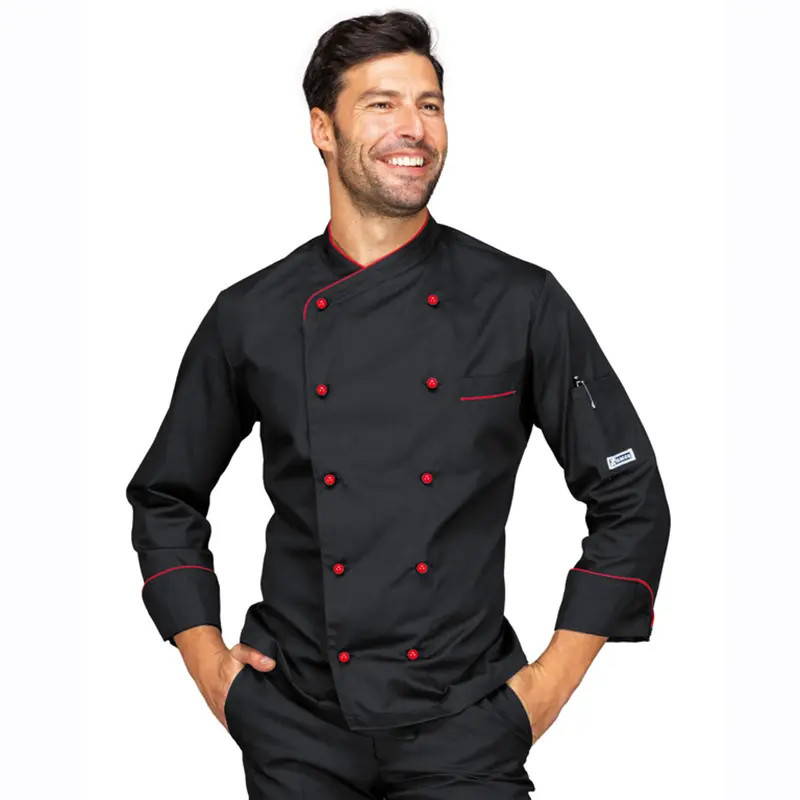 La Chaqueta Panamá de Isacco redefine el uniforme de cocina moderno. Con su sofisticado diseño en color Negro con detalles en Rojo y su corte Slim Fit, esta prenda está diseñada para chefs y profesionales de la gastronomía que buscan una imagen impecable sin renunciar a la funcionalidad técnica necesaria en los entornos de cocina más exigentes.