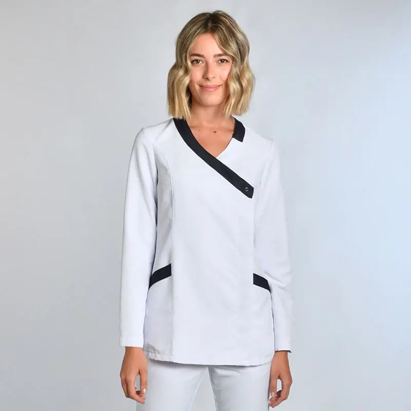 Casaca cruzada de mujer en tejido blanco de microfibra. Referencia: 600033-101.
