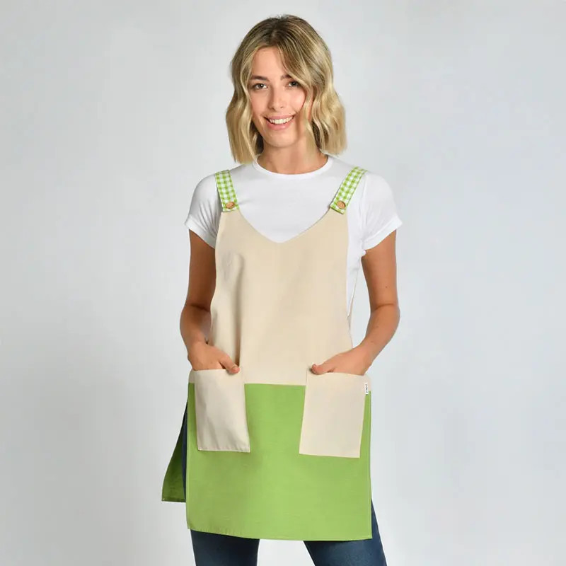Delantal con peto beige y verde pistacho. Referencia 8249-385.