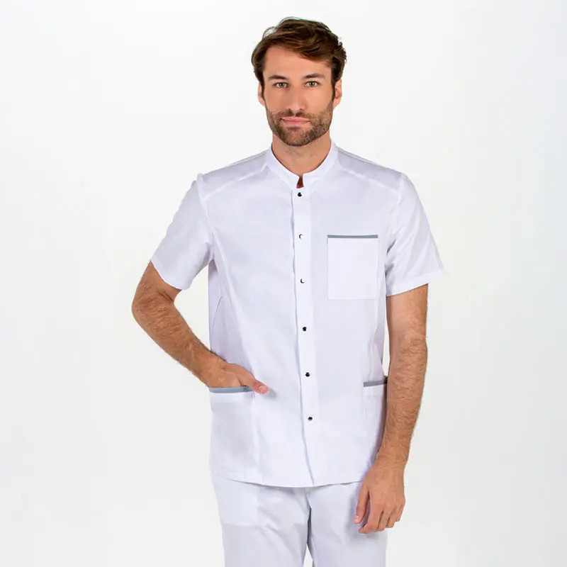 Chaqueta médica Peter blanca con detalles en raya marino. Referencia: 036100.